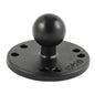 La RAM-B-202U consiste en una bola de goma de 1 pulgada de diámetro de tamaño "B" conectada a una placa redonda de 2.5 pulgadas de diámetro. Este soporte tiene orificios pre-perforados, incluyendo el patrón de agujeros AMPs universal.