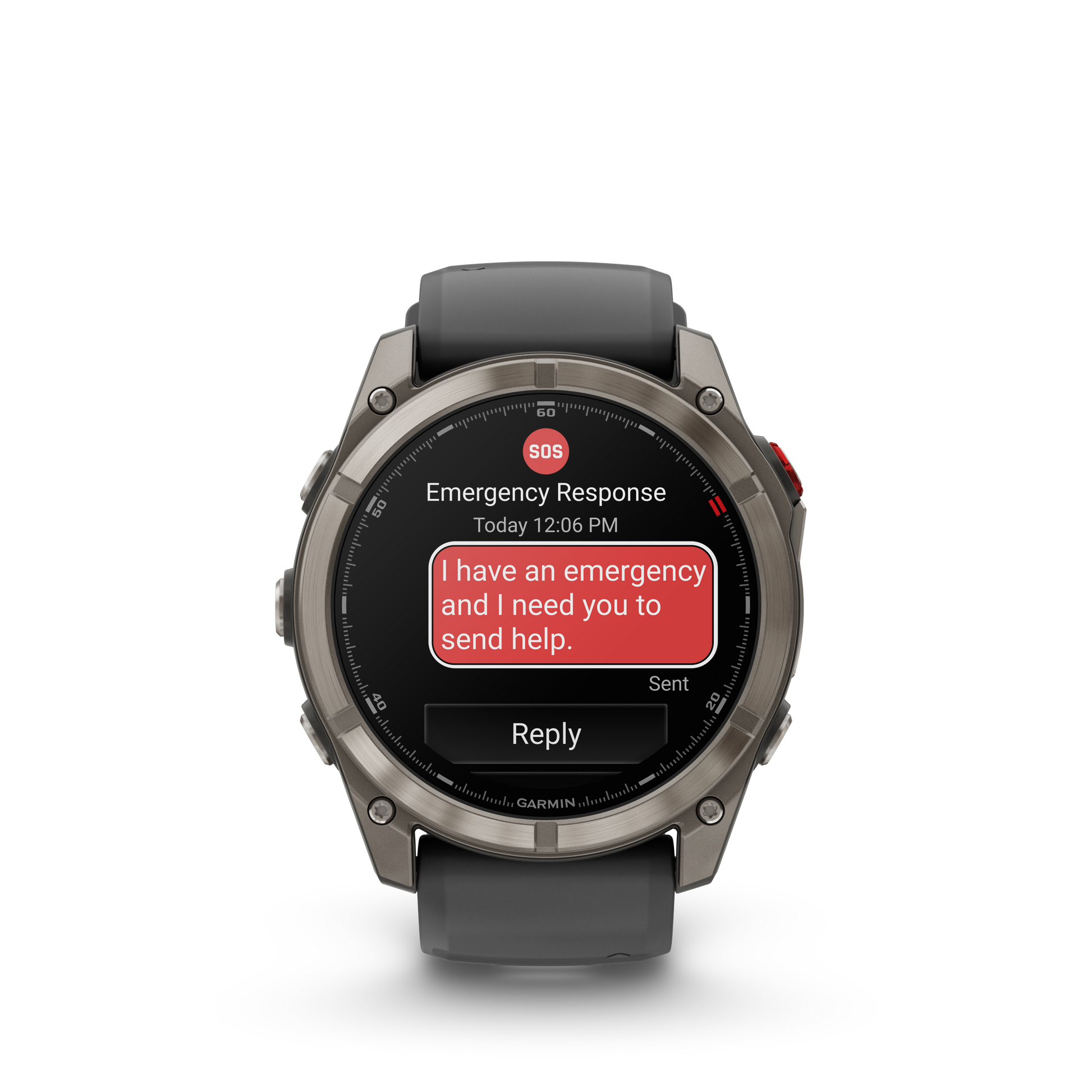El fēnix® 8 Pro, nuestro primer smartwatch con tecnología inReach1 para conectividad LTE y por satélite, te aporta tranquilidad en tus aventuras. ¿Necesitas ayuda? Activa un mensaje SOS interactivo para obtener asistencia de emergencia del personal disponible las 24 horas Centro de coordinación Garmin Response.