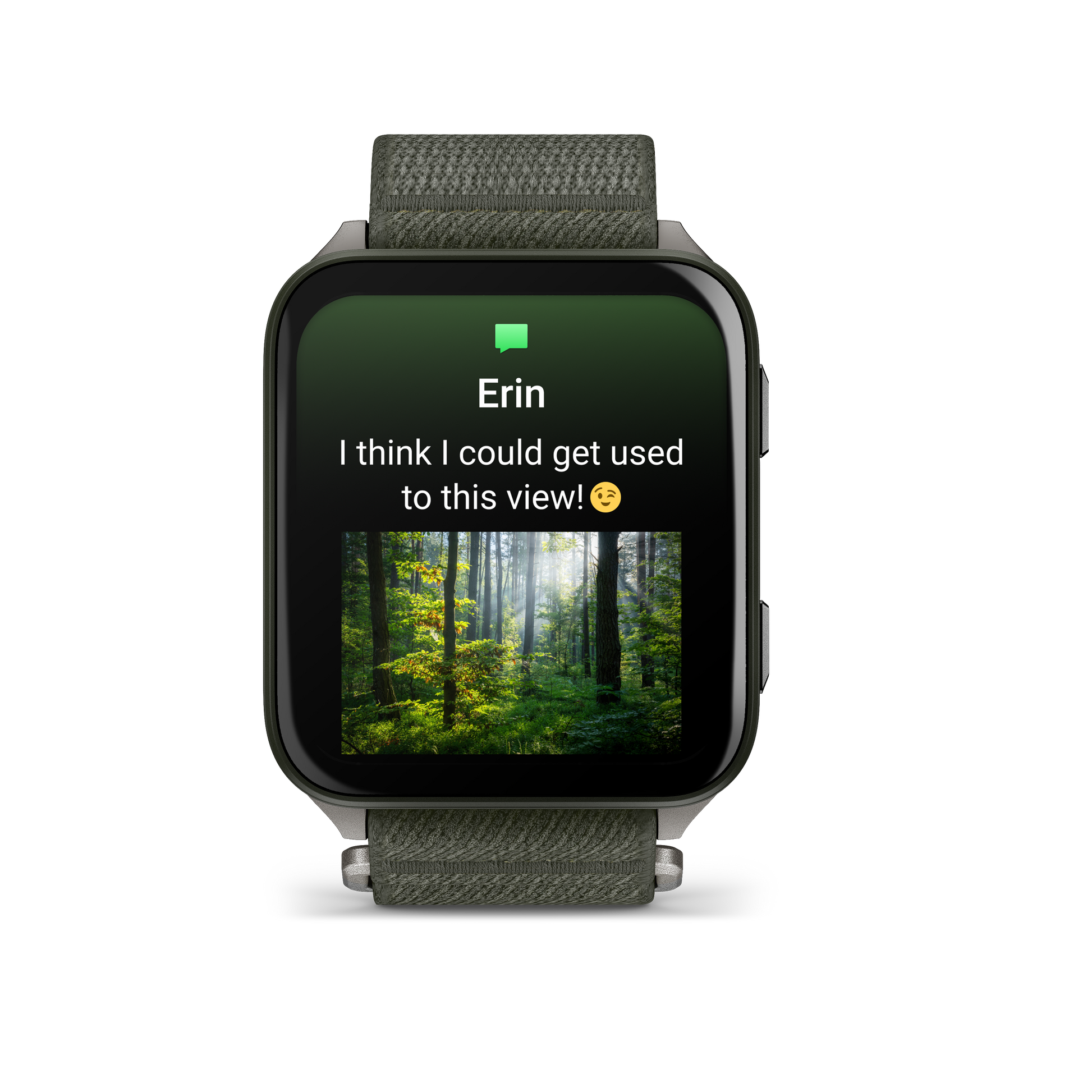 Utiliza el teclado para enviar respuestas de texto rápidas desde el reloj vinculado (solo para Android o a través de la aplicación Garmin Messenger™4) sin tener que sacar el teléfono del bolsillo.