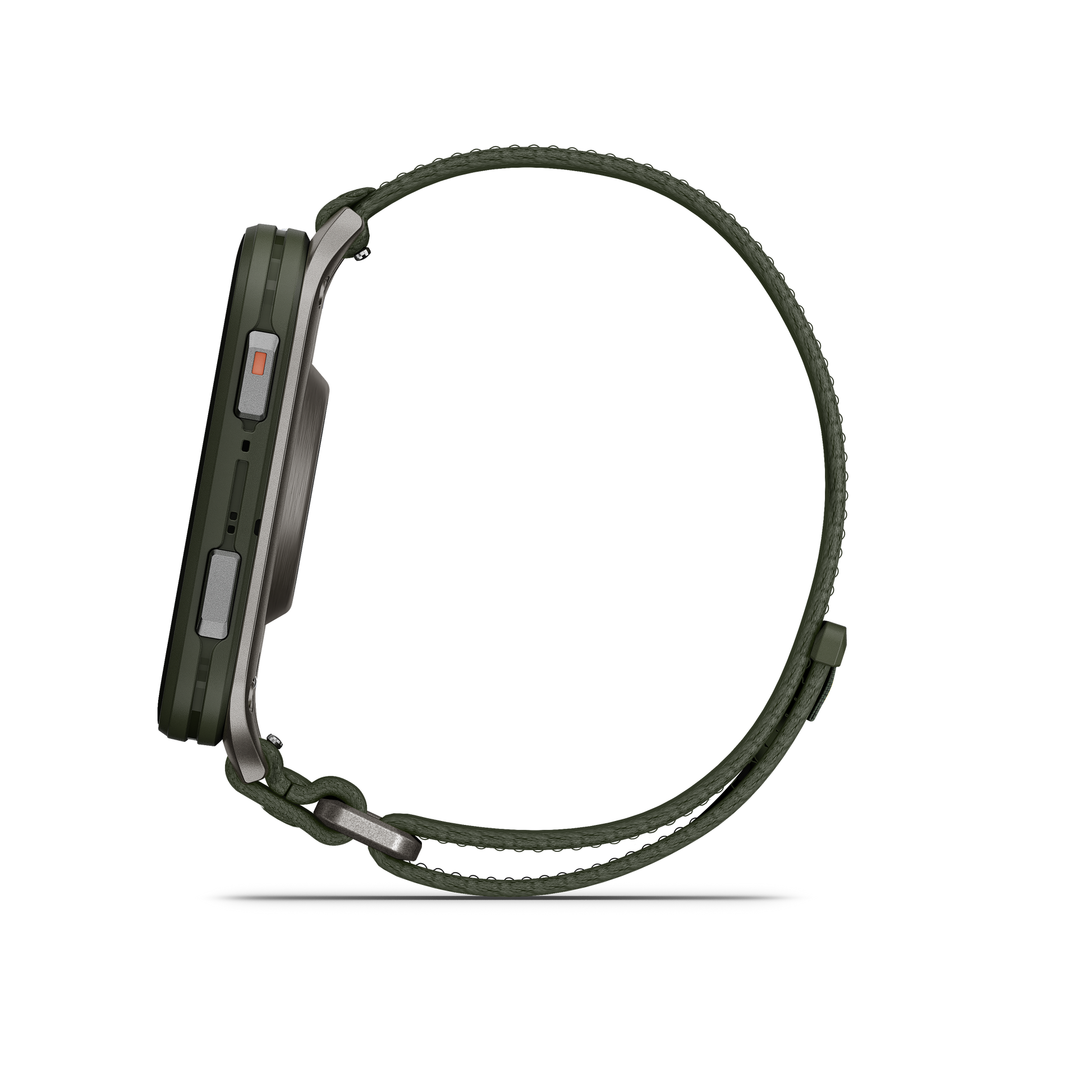 Consulta tus datos en nuestra pantalla AMOLED de 2″ de mayor tamaño con una lente de zafiro resistente a los arañazos. Llévalo cómodamente durante todo el día gracias a su ligera carcasa de titanio, su diseño elegante y su correa de nailon ComfortFit.